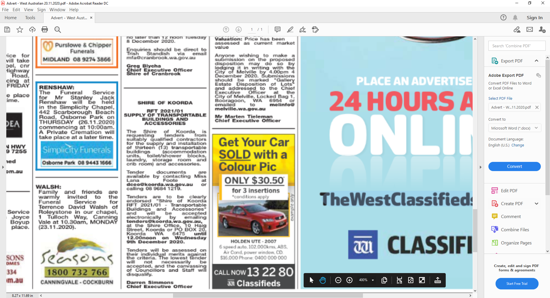 18/11/2020 - Shire Website 20/11/2020 - The West Australian