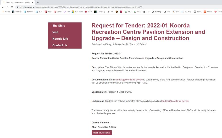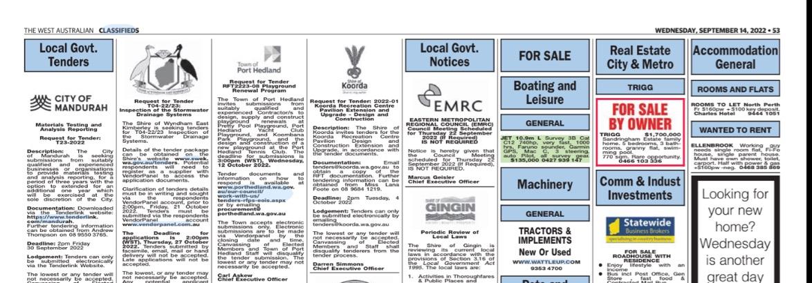 09/09/2022 - Shire Website 14/09/2022 - The West Australian |