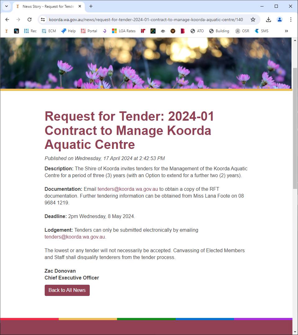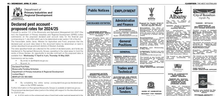 17/04/2024 - Shire Website 17/04/2024 - The West Australian |