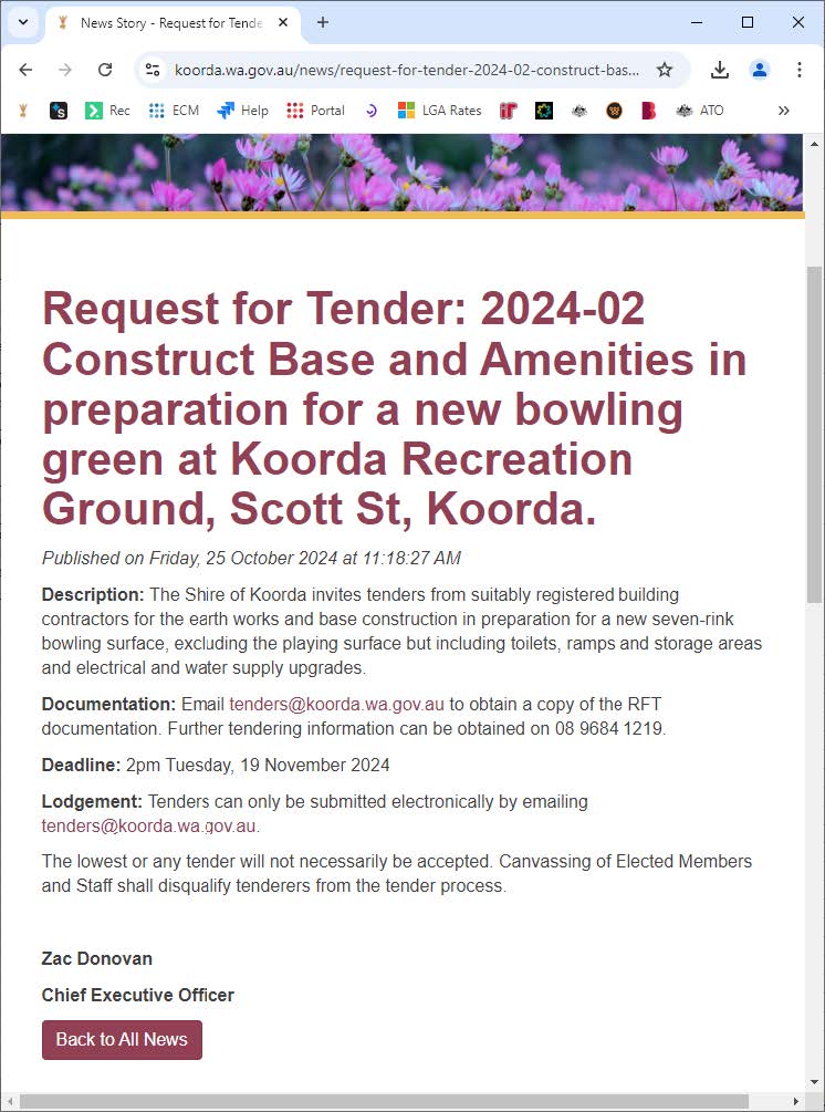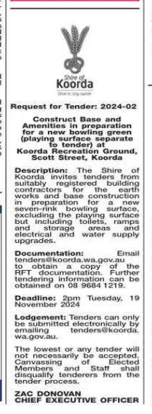 25/10/2024 - Shire Website 26/10/2024 - The West Australian |