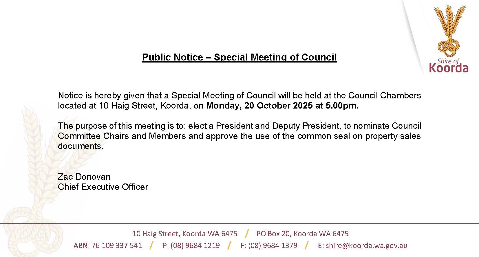 Public Notice - Special Meeting of Council